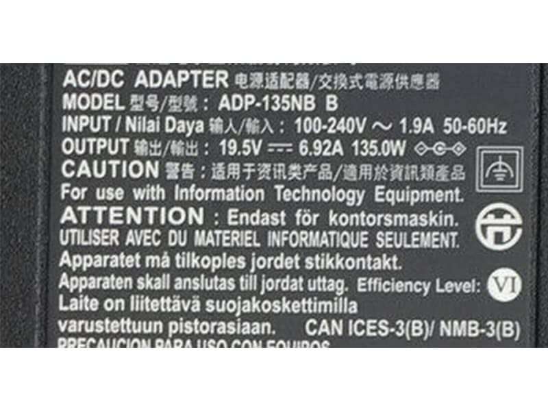 OUTPUT: 19.5V 6.92A,/7.1A 135W