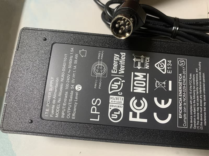 4-pin 59.5W 54.0V 1.1A Power supply AC charger for I.T.E NU60-S540110-I1 interface adapter